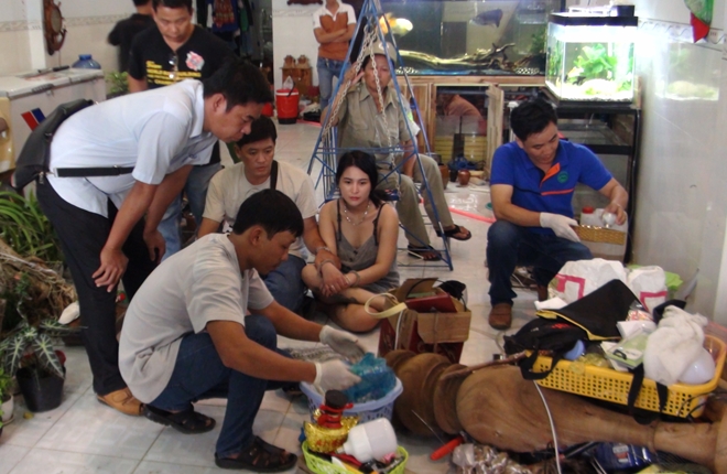 | Công an kiểm tra căn nhà, phát hiện Loan tàng trữ lượng lớn ma tuý. |
