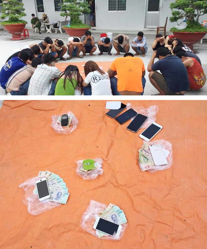 Tại hiện trường, lực lượng chức năng thu giữ: 1 bộ xí ngầu, 15 xe môtô, 18 điện thoại di động, 400 ngàn đồng và nhiều tang vật liên quan khác. Khám xét trên người các đối tượng, lực lượng chức năng còn thu giữ 46 triệu 370 ngàn đồng tiền mặt.