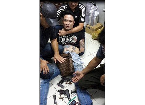 | Đức "Cổ Lễ" tuy có bệnh án tâm thần nhưng luôn dắt theo 2 khẩu súng bên mình. |