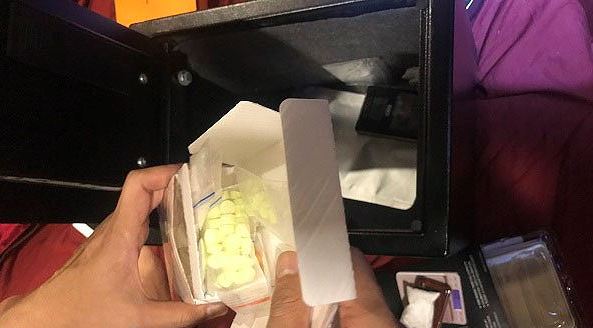 Khám xét phòng Linh thuê ở chung cư này, cơ quan Công an phát hiện phía trong chiếc két sắt có 1 túi nilon chứa 62 viên nén hình tròn màu vàng chanh, 1 túi nilon có 6 viên nén màu cam dập logo hình mặt người, 3 túi nilon chứa tinh thể màu trắng và 2 chiếc cân điện tử.