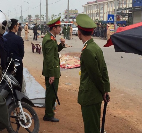 | Công an tỉnh Vĩnh Phúc khám nghiệm hiện trường vụ TNGT. |