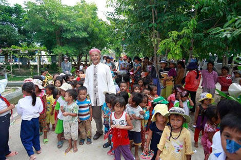 | Nhà thơ, nhà nghiên cứu Inrasara trong một chuyến đi về với trẻ em vùng nông thôn. |