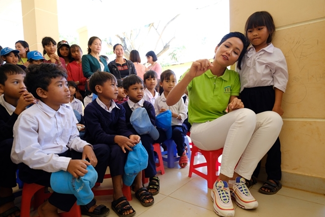 | Hoa hậu Hoàn Vũ Việt Nam 2018 H’Hen Niê tặng sách cho học sinh nghèo |