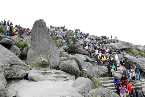 | Du khách du xuân trên đỉnh Yên Tử. |