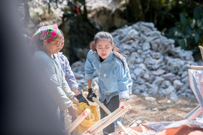 Để thực hiện dự án, Lương Thuỳ Linh đã đích thân kêu gọi quyên góp kinh phí, trực tiếp tham gia khuân vác vật liệu, nghiền đá…cùng bà con.