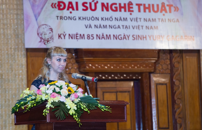 | Bà Natalia Safinskaya phát biểu khai mạc đêm nhạc. |
