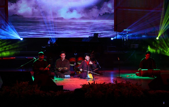 NSƯT Tấn Minh trình bài một sáng tác âm nhạc của nhà thơ Hồng Thanh Quang, ca khúc “Lạc tới dòng sông”.