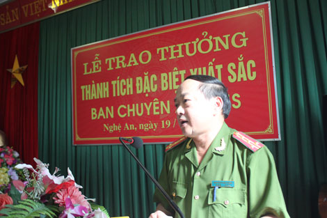 Tại buổi lễ, đồng chí Lê Xuân Đại, Phó Chủ tịch UBND tỉnh và Đại tá Lữ Văn Tường, Phó Giám đốc Công an tỉnh đã tặng hoa chúc mừng, tuyên dương các lực lượng tham gia đấu tranh chuyên án, đồng thời mong muốn tập thể lãnh đạo, CBCS Phòng Cảnh sát điều tra tội phạm về trật tự quản lý kinh tế và chức vụ Công an Nghệ An tiếp tục phát huy những thành tích đã đạt được, nỗ lực phá thêm nhiều chuyên án, đấu tranh hiệu quả với tội phạm trên địa bàn tỉnh nhà.