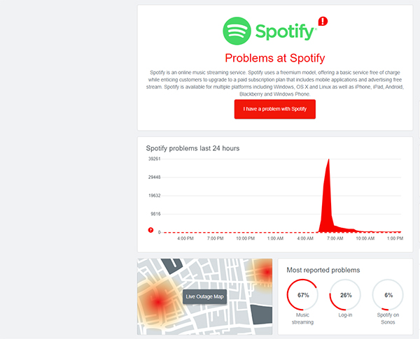 | Một trong những thống kê báo cáo lỗi từ người dùng liên quan đến sự cố sáng nay. |