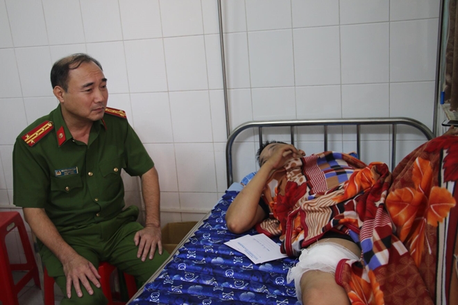 | Đại tá Nguyễn Đình Hoàn, Phó Giám đốc Công an tỉnh Bắc Giang thăm cán bộ CSGT bị thương |