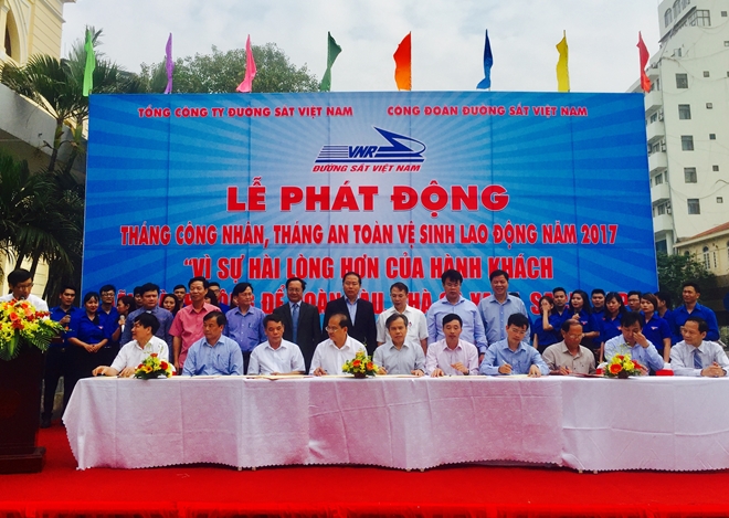 | Các đơn vị ký cam kết thi đua tại Lễ Phát Động Tháng công nhân, Tháng an toàn vệ sinh lao động |