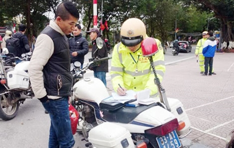 | Người đi bộ vi phạm bị Cảnh sát giao thông lập biên bản xử phạt. |