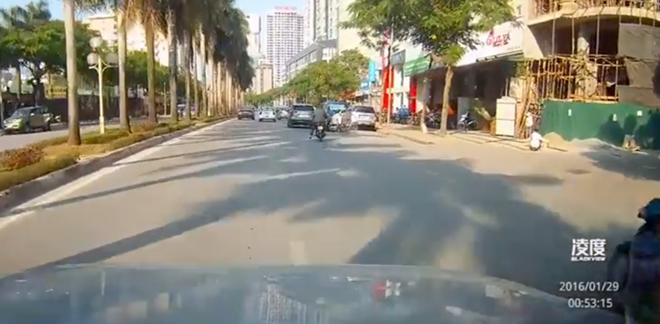 Khi chiếc CX5 di chuyển qua Trung tâm tiệc cưới Vạn Hoa tại số 89 Lê Đức Thọ (Mỹ Đình) thì tài xế đánh lái hất văng một người đi xe máy xuống đường.