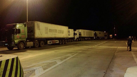 | Đoàn xe quá tải tại Trạm thu phí IC12 đêm 19/9/2015. |