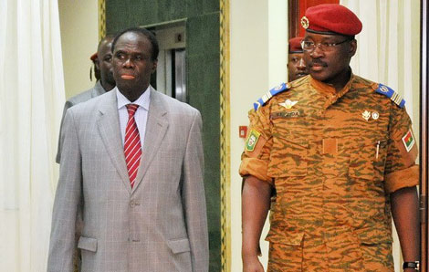 | Tổng thống dân sự Michel Kafando (trái) và lãnh đạo quân đội Burkina Faso. |