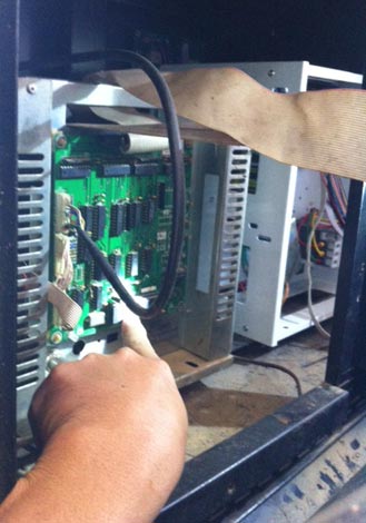 | Cận cảnh IC giả được gắn vào cột xăng (ảnh do công an cung cấp). |