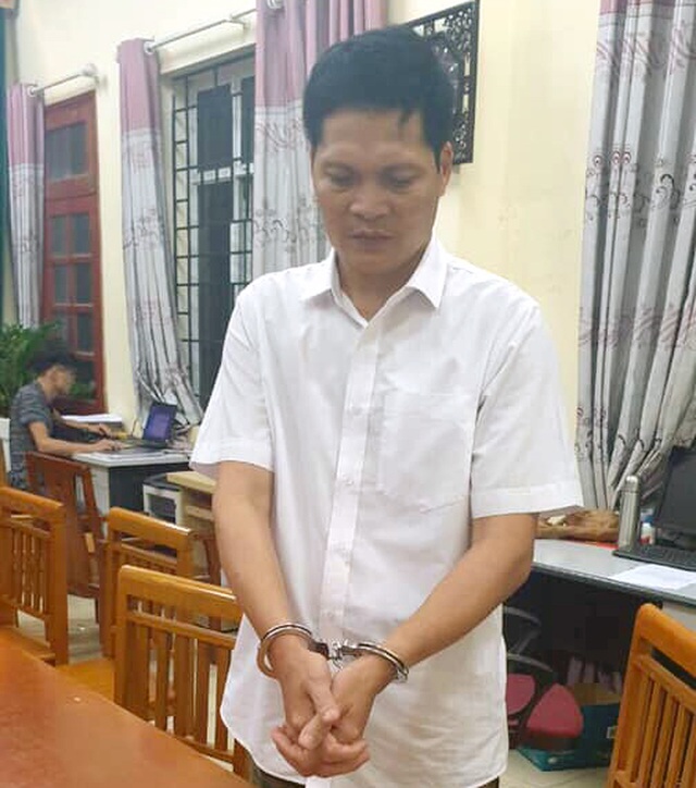 | Đối tượng Ngô Văn Vũ cùng tang vật tại cơ quan công an. |