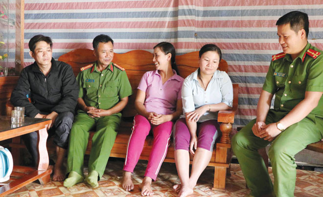 | Lực lượng Công an bám địa bàn, lắng nghe tâm tư nguyện vọng của bà con. |