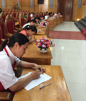 | Các thí sinh tham dự Hội thi "Nấu ăn giỏi" tham gia phần thi lý thuyết. |