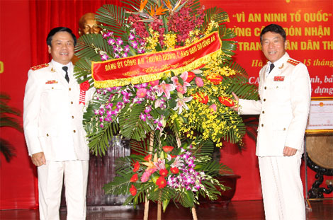 | Thượng tướng Trần Việt Tân, Thứ trưởng Bộ Công an tặng hoa chúc mừng Tổng cục V. |