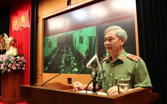 | Thiếu tướng Bùi Quang Hải thông báo về tình hình an ninh, trật tự 9 tháng đầu năm 2019. |