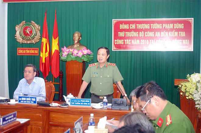 Giao nhiệm vụ cho Công an và CS PCCC Đồng Nai, Thứ trưởng Phạm Dũng yêu cầu Công an và CS PCCC Đồng Nai phải tập trung rà soát, giải quyết dứt điểm những vụ việc phức tạp nổi lên tại địa bàn và sớm tập trung lực lượng, khắc phục giải quyết những tồn tại, hạn chế đã chỉ ra để hoàn thành tốt công tác Công an năm nay và những năm tới.
