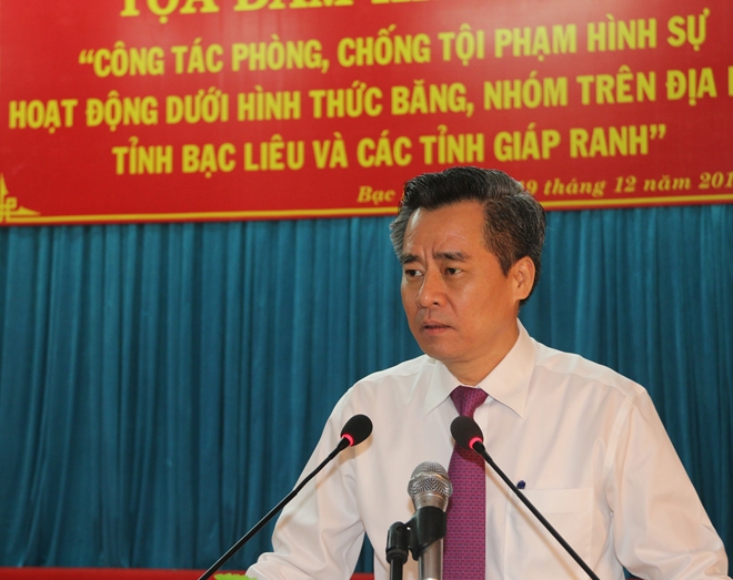 Thượng tướng, PGS-TS Nguyễn Văn Thành - Ủy viên Trung ương Đảng, Thứ trưởng Bộ Công an, chủ trì Tọa đàm. Về phía địa phương có các đồng chí Nguyễn Quang Dương - Ủy viên Trung ương Đảng, Bí thư Tỉnh ủy; Dương Thành Trung, Chủ tịch UBND tỉnh Bạc Liêu.