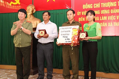 | Thứ trưởng Bùi Văn Nam tặng quà Công an xã Thái Mỹ, huyện Củ Chi – đơn vị có thành tích xuất sắc được Bộ Công an tặng bằng khen. |