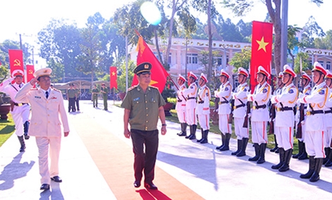 | Trung tướng Phạm Dũng, Thứ trưởng Bộ Công an duyệt đội danh dự tại Trại giam Cao lãnh. |