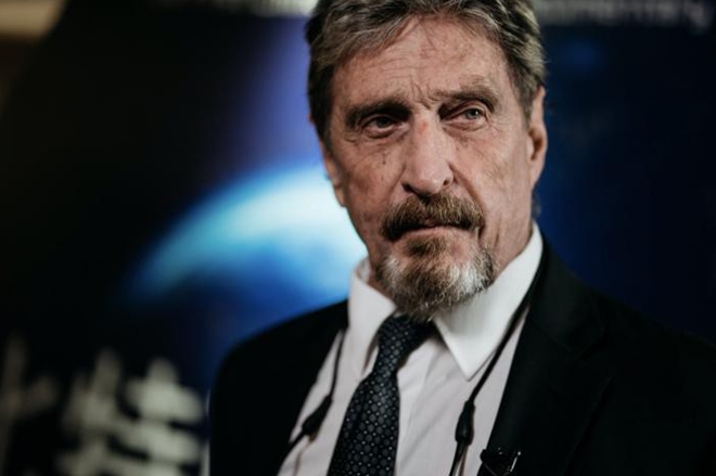 John McAfee (SN 1945) là chuyên gia bảo mật người Mỹ gốc Anh. Ông đã sáng lập hãng bảo mật danh tiếng McAfee vào năm 1987, trước khi bán lại đứa con cưng này cho tập đoàn bán dẫn hàng đầu nước Mỹ Intel vào năm 2010 với giá 7,68 tỷ USD.