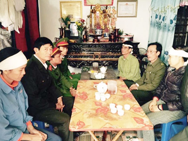 | Công an huyện Quảng Xương thăm hỏi, động viên gia đình nạn nhân Trần Thị Huệ. |