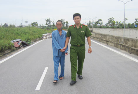 | Dẫn giải Trần Mạnh Minh đến thực nghiệm hiện trường gây án. |