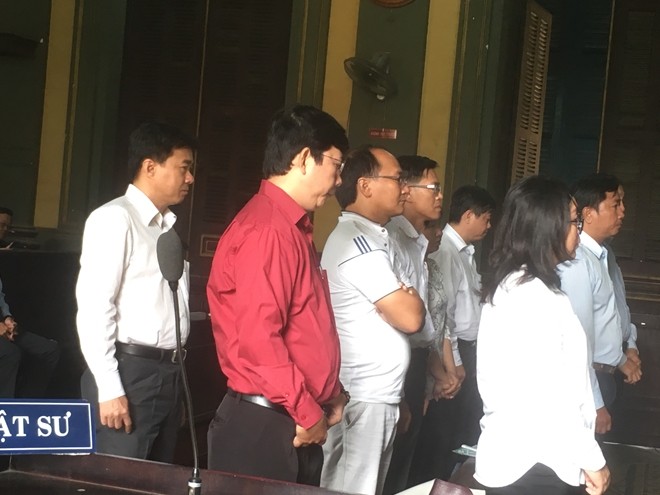 | Bị cáo Lê Quang Trí (hàng cuối cùng) và các bị cáo tại phiên toà phúc thẩm |