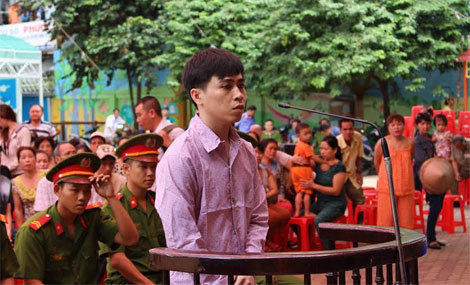 Tại phiên tòa xét xử, Huy nhận tội. Cho rằng hành vi của mình là mất hết tính người, bản thân nghiện ngập và không lo gì được cho vợ con nên Huy xin HĐXX mức án cao nhất (tử hình).
