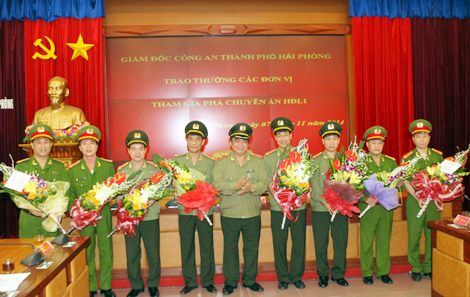 | Phòng PC44 cùng các đơn vị phối hợp nhận khen thưởng từ lãnh đạo Công an TP Hải Phòng. |