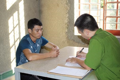 | Đối tượng truy nã đầu thú tại cơ quan công an. |