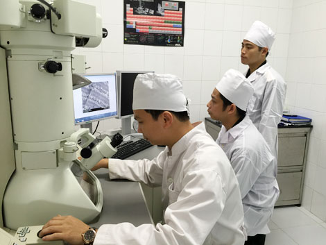 | Những cán bộ, chiến sỹ của Viện 69 đang nghiên cứu khoa học về hình thái bảo quản. |
