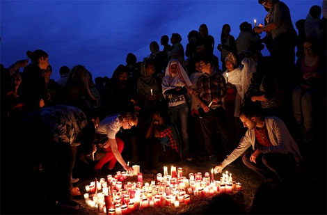 | Hàng trăm người xúc động đặt nến rên bờ biển tại Valetta, Malta (ảnh) để tưởng nhớ các nạn nhân của vụ thảm kịch. |