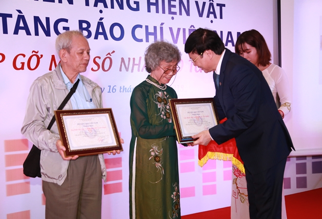 Tại buổi lễ, đại diện Hội Nhà báo Việt Nam và Bảo tàng Báo chí Việt Nam đã trao chứng nhận cho các nhà báo lão thành, gia đình nhà báo quá cố, các các cơ quan báo chí - những người đã quyết định hiến tặng nhiều tư liệu, hiện vật quý giá cho Bảo tàng Báo chí Việt Nam.