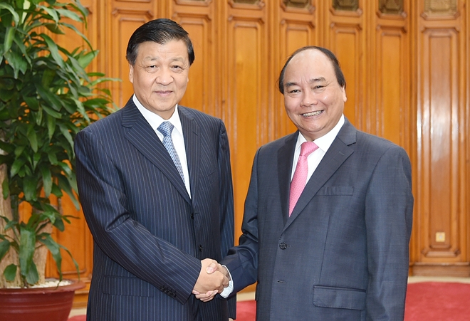 | Thủ tướng Nguyễn Xuân Phúc tiếp đồng chí Lưu Vân Sơn, Ủy viên Thường vụ Bộ Chính trị, Bí thư Ban Bí thư Trung ương Đảng Cộng sản Trung Quốc. Ảnh: VGP/Quang Hiếu |