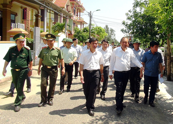 | Phó thủ tướng Trương Hòa Bình dẫn đầu Đoàn công tác của Chính phủ cùng lãnh chính quyền địa phương xuống thăm hỏi, động viên ngư dân ở xã Quang Phú, Quảng Bình. |