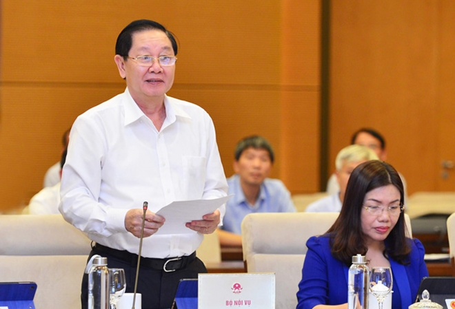 Giải đáp băn khoăn của Chủ tịch Quốc hội, Bộ trưởng Lê Vĩnh Tân cho biết cơ bản các địa phương đã gửi đề án sắp xếp. Bộ Nội vụ cũng đã thẩm định đề án của 24 tỉnh (chiếm hơn 67% số đơn vị sắp xếp), số địa phương còn lại có số đơn vị phải sắp xếp không nhiều, đồng thời cho biết, sắp tới Uỷ ban Pháp luật của Quốc hội phối hợp thẩm định ngay từ đầu, cũng như việc lấy ý kiến thành viên Chính phủ nhanh hơn thì tiến độ trình xin ý kiến Uỷ ban Thường vụ Quốc hội sẽ đảm bảo.