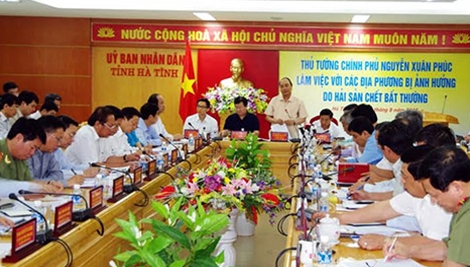 Phát biểu khai mạc tại cuộc họp, Thủ tướng Nguyễn Xuân Phúc nêu rõ, ngay sau khi nhận được thông tin về sự cố tại Hà Tĩnh, Chính phủ đã có chỉ đạo kịp thời, cử Phó Thủ tướng Trịnh Đình Dũng hai lần vào miền Trung để cùng lãnh đạo các địa phương, bộ ngành xử lý.