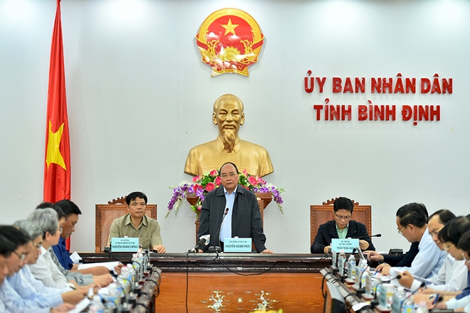 Cho biết lũ đã xuống, chỉ còn ngập lụt ở một số vùng thấp, Thủ tướng nhấn mạnh nhiệm vụ cấp bách trước mắt của Bình Định và các cơ quan liên quan là tổ chức thăm hỏi, động viên, hỗ trợ các gia đình bị thiệt hại. Thủ tướng cho rằng đây là việc thường hay làm, nhưng cần phát động phong trào ở địa phương để làm việc này tốt hơn nữa. Nhấn mạnh tinh thần không để hộ dân nào thiếu đói, bệnh tật do lũ lụt, Thủ tướng yêu cầu những việc nào có chính sách hỗ trợ cụ thể thì địa phương chủ động thực hiện. Ngân sách Trung ương sẽ hỗ trợ địa phương theo đúng quy định.