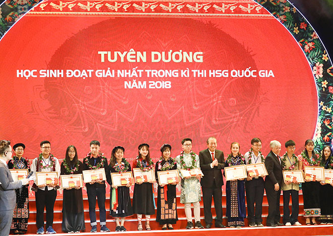 Cụ thể, lễ tuyên dương năm nay đã tuyên dương 17 học sinh, sinh viên dân tộc thiểu số (DTTS) đoạt giải trong cuộc thi Khoa học Kỹ thuật cấp Quốc gia năm 2018; 94 học sinh đoạt giải Nhất, Nhì, Ba và Khuyến khích trong kỳ thi học sinh giỏi Quốc gia thuộc 12 dân tộc thiểu số.