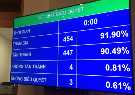 | 90,49% ĐBQH biểu quyết thông qua Nghị quyết bầu Phó Chủ tịch Quốc hội, sáng 5-4. |