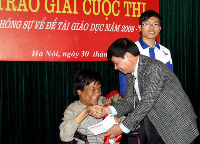 | Trần Hồng Giang nhận giải thưởng trong một cuộc thi. |
