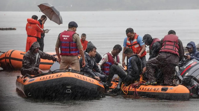 | Lực lượng Ứng phó Thảm họa Quốc gia Ấn Độ (NDRF) tiến hành các hoạt động cứu hộ và tìm kiếm người sống sót ở hồ Lower Lake tại Bhopal, Ấn Độ. |