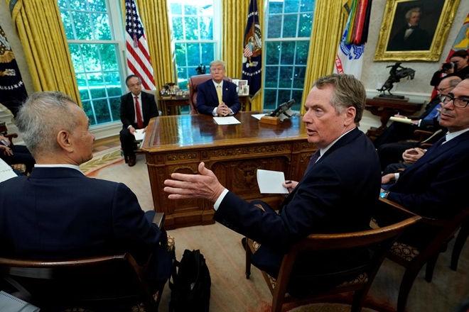 “Chúng tôi đã đi đến một thỏa thuận giai đoạn một”, Tổng thống Mỹ Donald Trump tuyên bố tại Phòng Bầu dục cùng với Phó Thủ tướng Trung Quốc Lưu Hạc chiều 11-10 (giờ Mỹ). Thỏa thuận này, theo ông Trump, là một “lễ hội tình yêu” sau nhiều tháng xích mích.