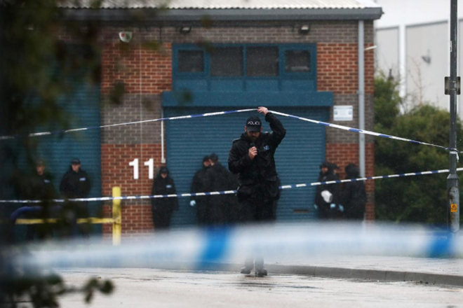 | Cảnh sát Anh tại hiện trường nơi chiếc xe chứa thi thể 39 nạn nhân được phát hiện. Ảnh: Reuters |